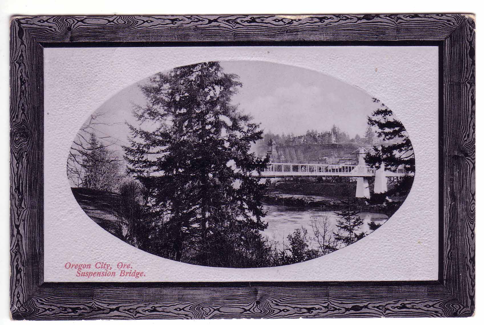 HERE THE OLD COURTHOUSE CAN BE SEEN BEHIND THE OLD BRIDGE OVER THE WILLAMETTE