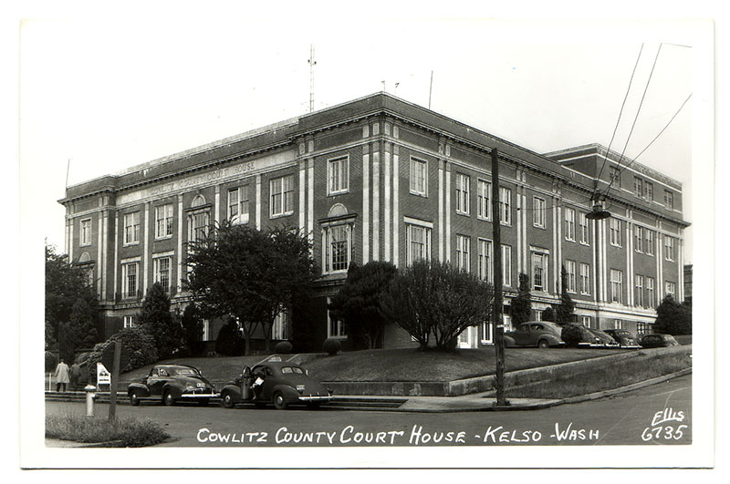Later moved about ten miles to Kelso, Washington. This building has since been replaced by a utilitarian Justice Center.